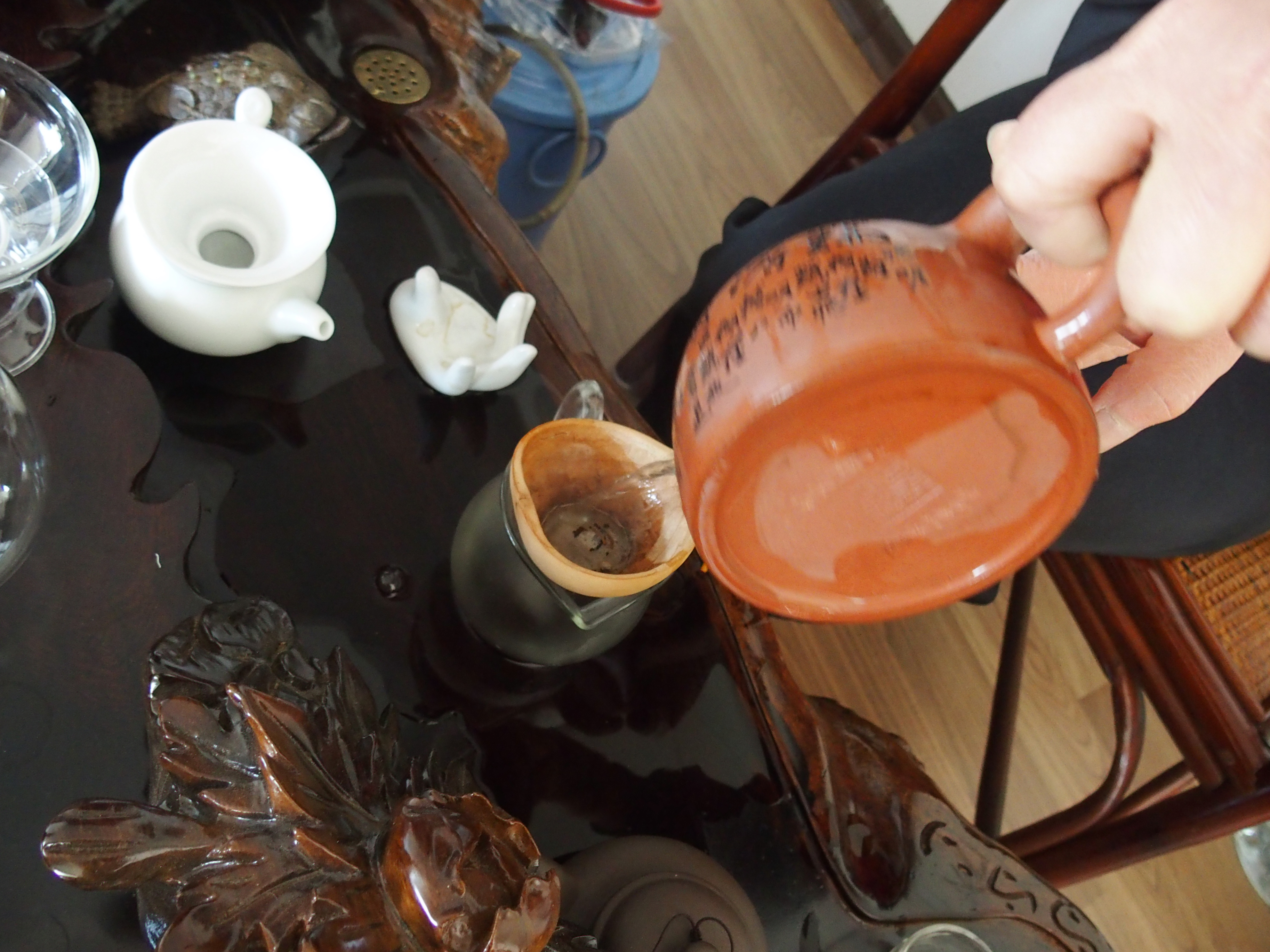 When it came my turn to make tea, this turned out to be comical and painful at the same time. For I had to pour the tea with no finger movement, which involved me burning my hand, but I did not want to insult Dr. Zhu, so I decided to say nothing about several burns on my hands. Yikes! 🙂