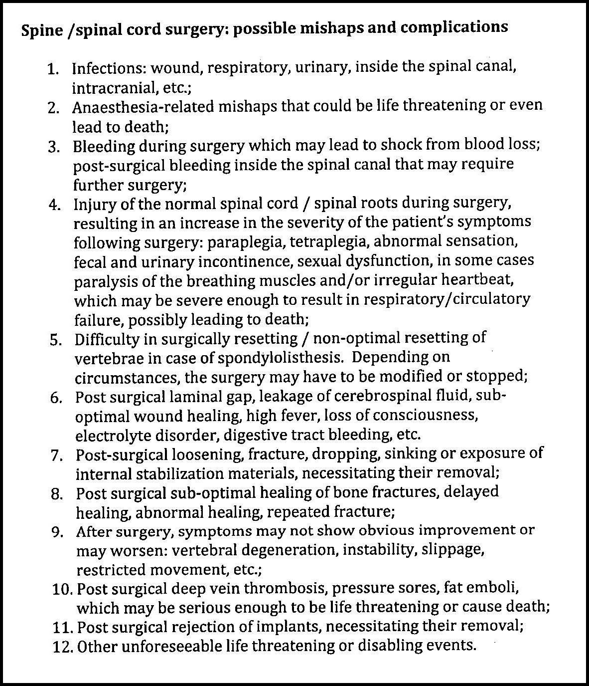 After confirming that Ali and her family clearly understood these risks, Dr. Zhu asked Ali to sign off on a document acknowledging and accepting a range of potential complications and risks, a summary of which is posted here below.