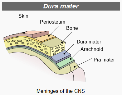 This diagram illustrates the numerous layers surrounding the spinal cord.  Dr. Liu had to drill away the bone of three vertebral lamina (C-5 through C-7) to gain wide “barn door” access to my spinal cord.  Then in order to secure my spinal column at the end of the surgery, Dr. Liu used part of the vertebrae he had cut away, crushed up to make a sort of mortar, to reinforce positioning of the three titanium rods and six screws he used to stabilize my spinal column.